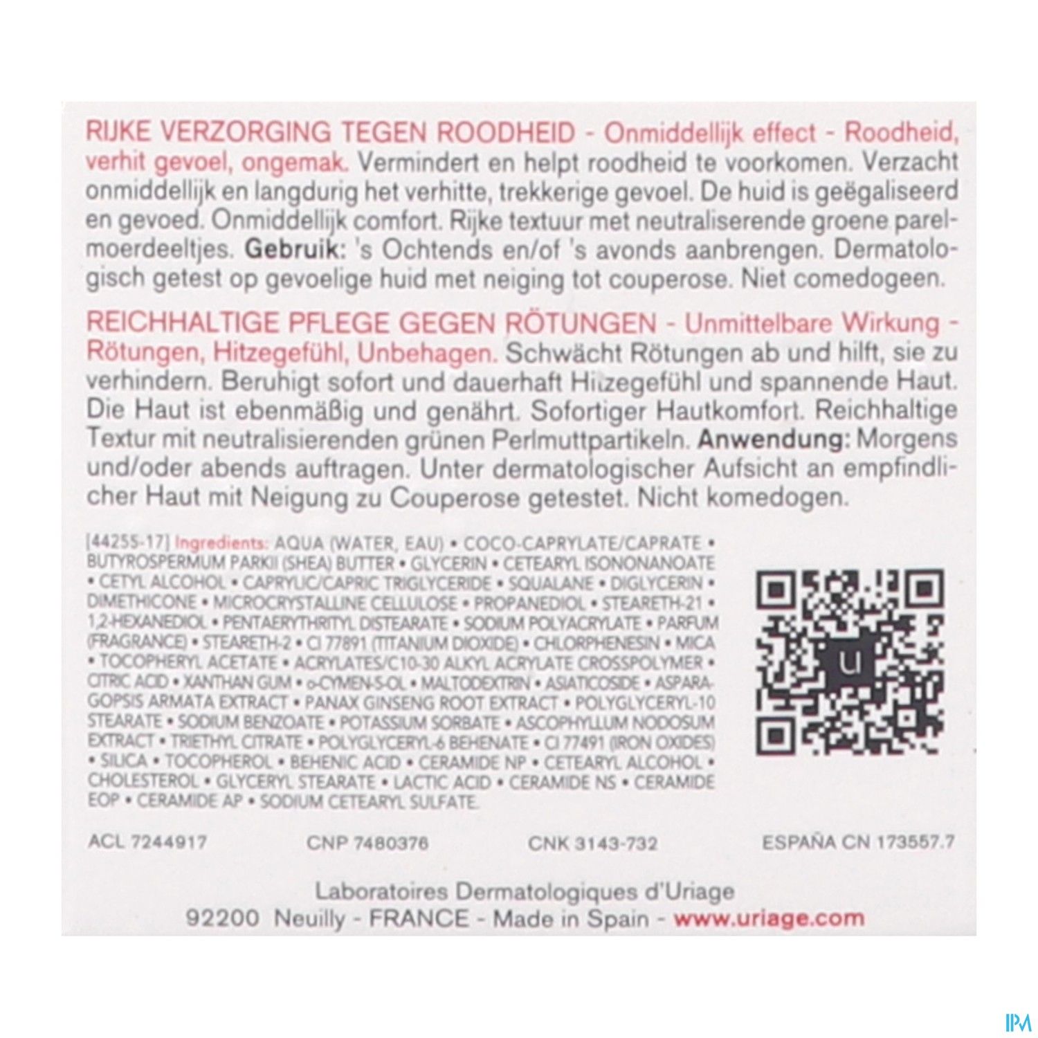 Een combinatie van TLR2-Regul complex en SK5R-complex (Specific Kallikrein-5 Regulator), een nieuw patent van de Laboratoires Dermatologiques d'Uriage, houdt kallikreïne 5 binnen de perken. Dit is een protease-enzym dat verantwoordelijk is voor ontsteking en vaatproblemen. Daardoor heeft deze balsem een uitgesproken kalmerend effect op de huid.