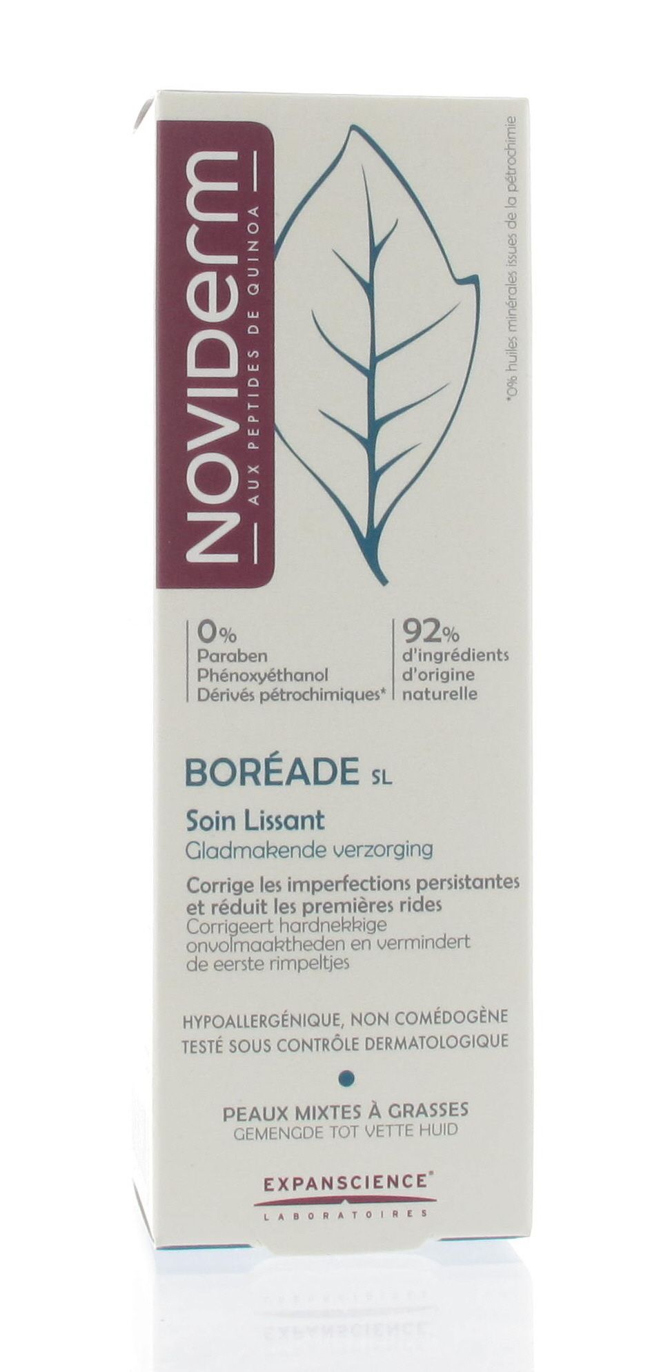 92% ingrediënten van natuurlijke oorsprong. SMA Complex (talgregulerend, matterend, zuiverend): 5 alfa-avocuta, zinkgluconaat, capryloylglycine