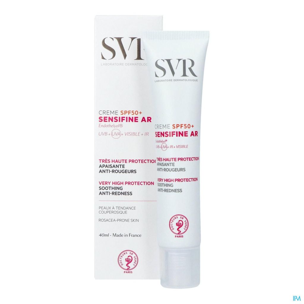 Hoge zonnebescherming SPF 50+ voor het gezicht met neiging tot roodheid en couperose.