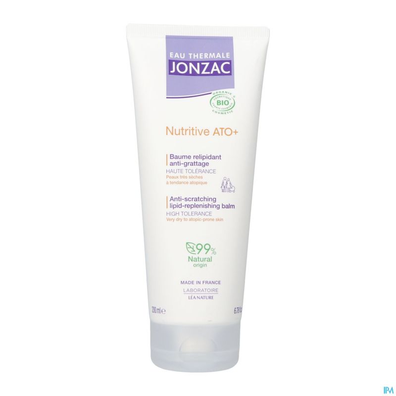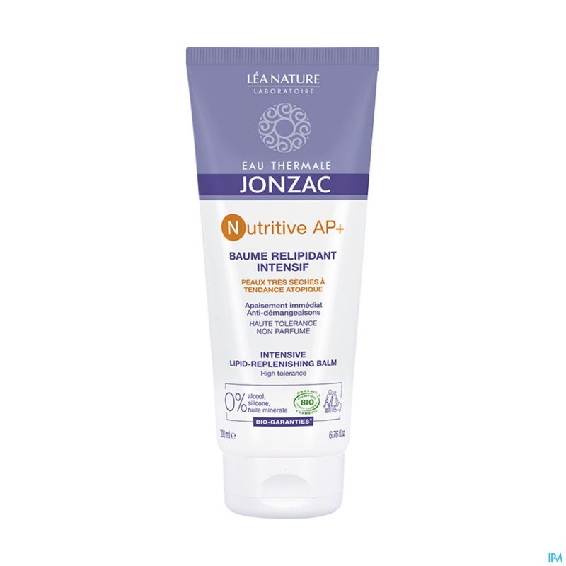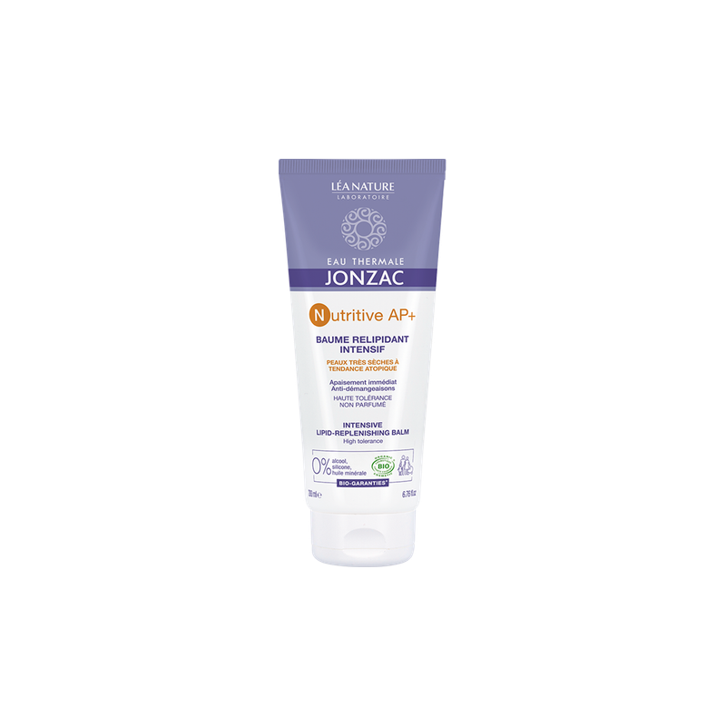 Nutritive AP+ Intensive Lipid-Replenishing Balm 200 ml vermindert en verlicht onmiddellijk jeukgevoelens, zonder een vettige of plakkerige finish. Verrijkt met prebiotica en herstructurerende ceramiden, herstelt en versterkt het de barrièrefunctie van de huid. De huid vindt comfort en rust. Geformuleerd met: 20% verzachtend, regenererend, anti-irriterend thermaal water van Jonzac. Een prebioticum, BioÉcolia®: het brengt de microbiota van de huid opnieuw in evenwicht. Biomimetische ceramiden (= die de natuurlijke mechanismen van de huid nabootsen): herstellen en versterken de huidbarrière.