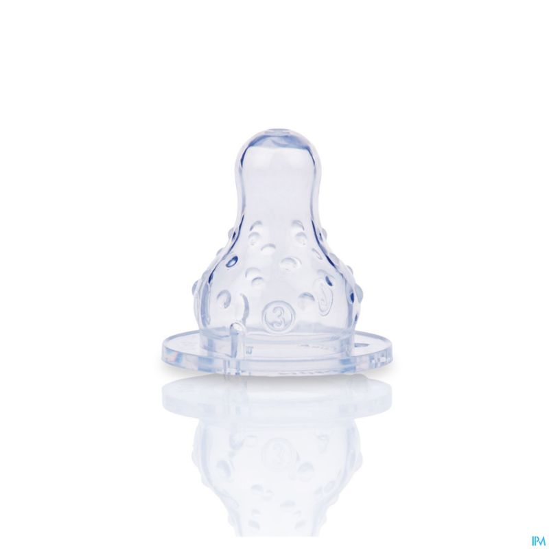 De speen is geschikt voor baby's eerste flesjes. Het triple flow-systeem ondersteunt een gezonde en veilige orale ontwikkeling. De drie antikoliekventielen in de speen voorkomen ongemakjes bij de baby. Het variabele debiet maakt deze speen ideaal voor het drinken van ingedikte melk.
