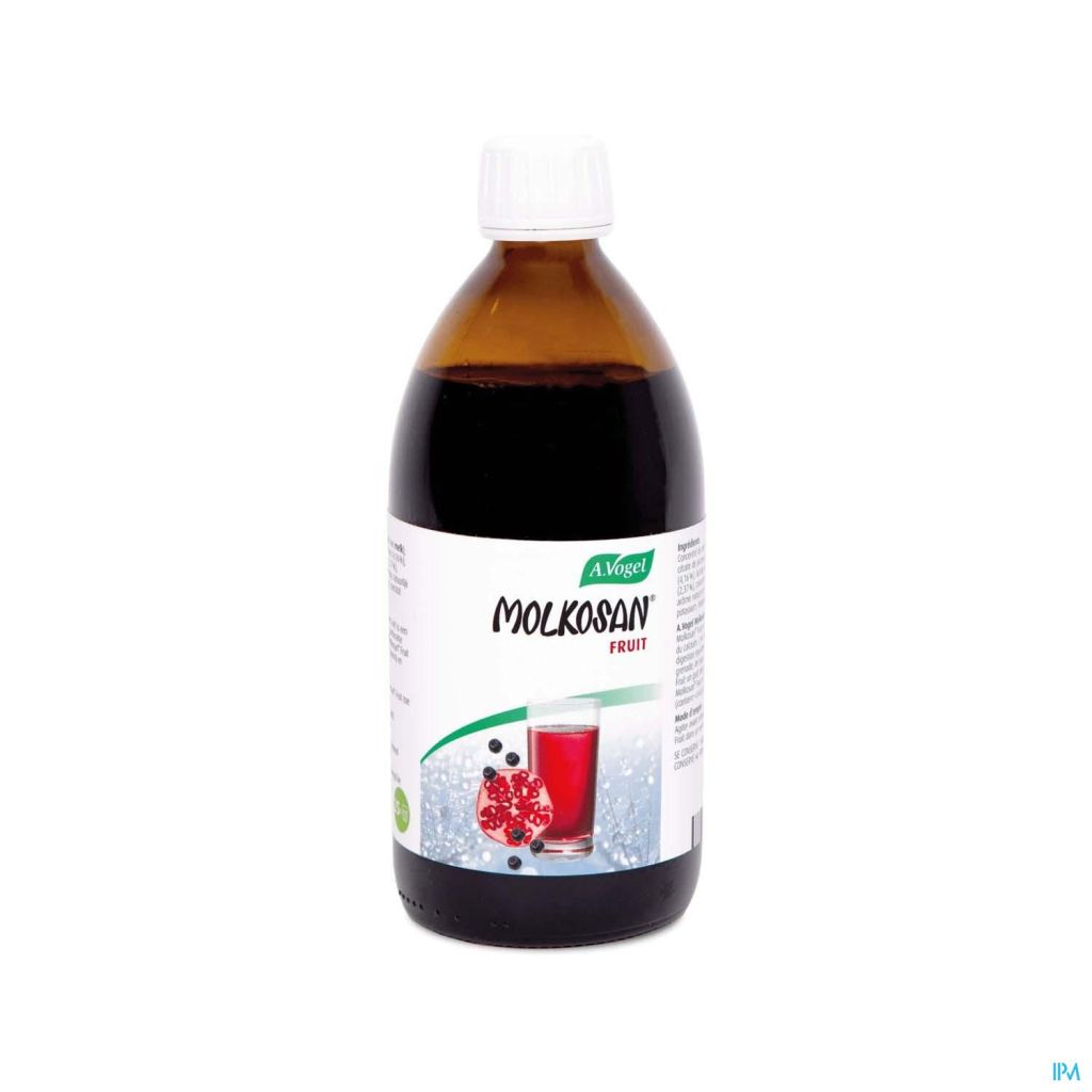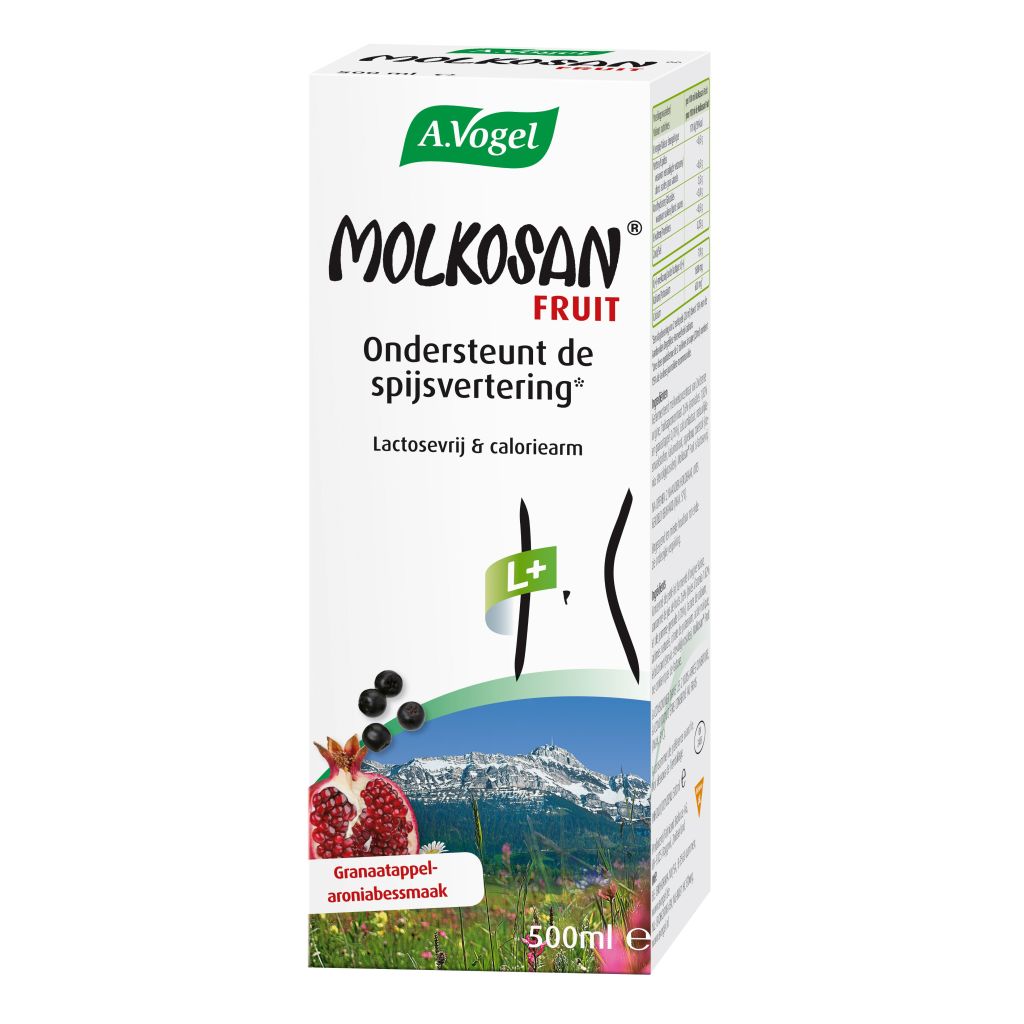 Molkosan® Fruit van A.Vogel is een weidrank met fruit en calcium. Het is een bron van calcium die bijdraagt aan een evenwichtige vertering. De combinatie van wei, appel, aronia-bessen en stevia geeft Molkosan® Fruit een milde en aangename, verfrissende en licht zure smaak.