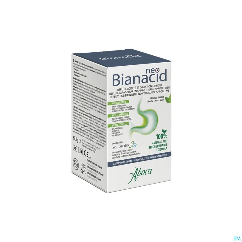NeoBianacid Maagzuur en Refux is een medisch hulpmiddel op basis van plantaardige en minerale moleculaire complexen, dat het maag- en slokdarmslijmvlies beschermt en kalmeert om het branderige gevoel, de maagpijn en het zuur, d.w.z. de typische symptomen van irritatie en ontsteking van het slijmvlies, snel tegen te gaan
