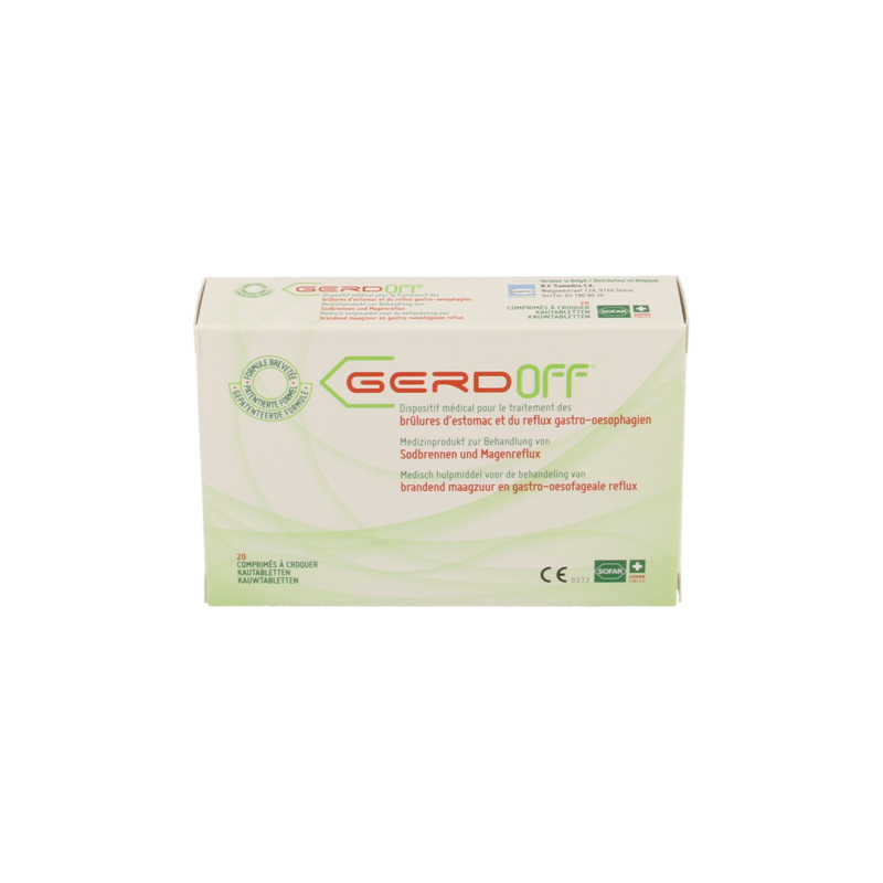 GERDOFF® is een originele en innoverende samenvoeging van chondroïtine sulfaat, hyaluronzuur en aluminium hydroxide. GERDOFF® draagt bij tot de bescherming tegen de irriterende werking van het zoutzuur dat door de maag wordt aangemaakt.