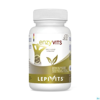 Enzyvits is een voedingssupplement dat bestaat uit een mengsel van 5 "Vega- zym"-enzymen, gecombineerd met bromelaïne, papaïne en gemberextract. Het Ve- gazym-complex bevat natuurlijke enzymen, waaronder alfa-amylase, lactase, lipasen, proteasen en cellulase.
