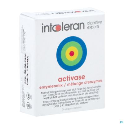 Intoleran activase bevat een, door onze eigen diëtisten, speciaal samengestelde hoog gedoseerde mix van de spijsverteringsenzymen alpha-galactosidase, glucoamylase, invertase en lactase. Alpha-galactosidase helpt bij de vertering van complexe koolhydraten, zoals fructanen en galactanen en deze komen o.a voor in granen, groentes en