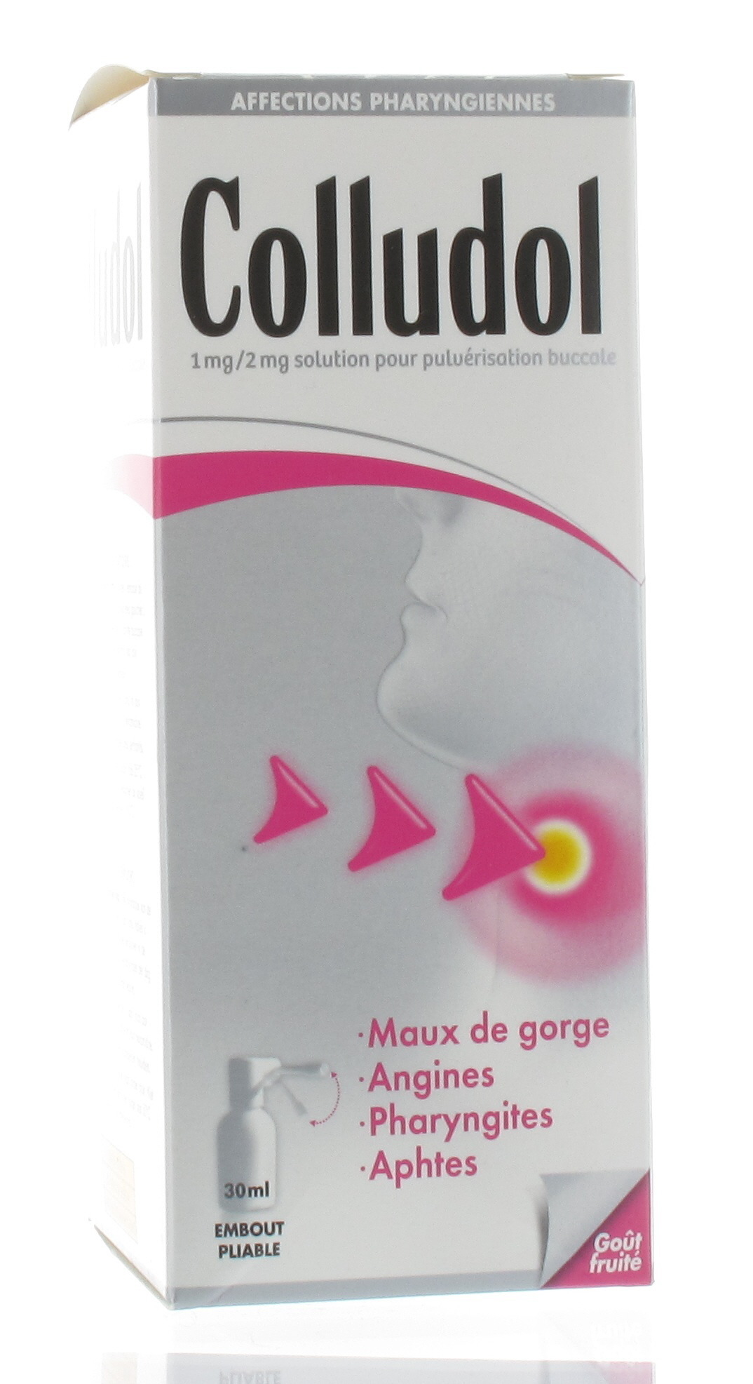 Colludol spray voor oromucosaal gebruik (gebruik in het mondslijmvlies) is een geneesmiddel tegen pijn en ontsteking in de mond en de keel (ontsmettend en verdovend). Behandeling van pijnlijke aandoeningen in de mond en de keel, namelijk: