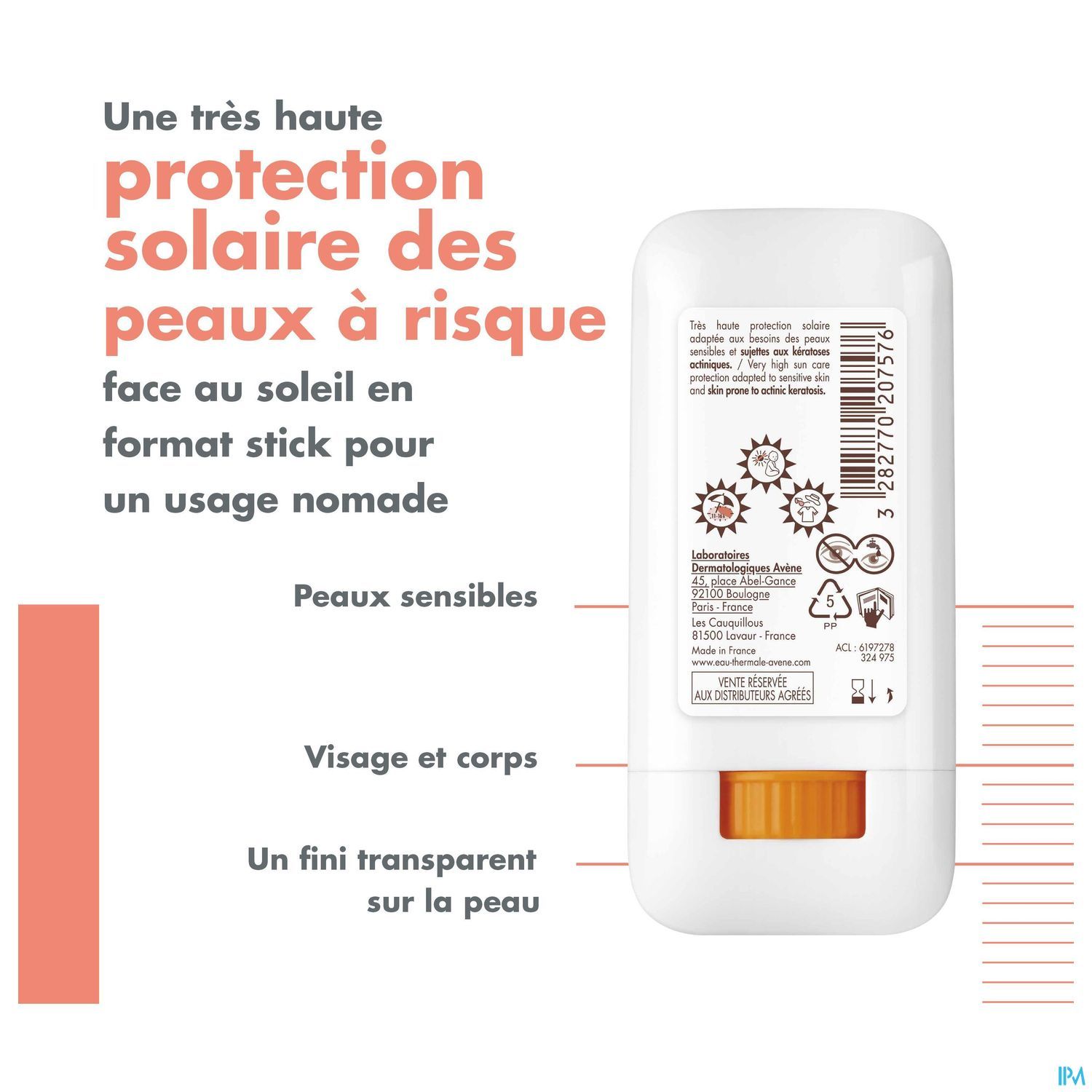 SunsiStick KA SPF 50+ kan worden gebruikt op specifieke zones van het voorhoofd, de neus, de jukbeenderen, de schedel, de rug van de handen, ... Het biedt een zeer hoge dagelijkse zonbescherming voor de gevoelige, blootgestelde huid en de huid die gevoelig is voor actinische keratose. De formule met transparante finish is erg gemakkelijk aan te brengen, zelfs op de meest gevoelige zones. De formule van SunsiStick KA SPF 50+ bestaat uit een uniek complex van actieve bestanddelen, ontwikkeld door Pierre Fabre Research en samengesteld uit: • Een stabiel en doeltreffend filtersysteem dat ook op lange termijn een zeer brede UVB-/UVA-bescherming biedt. • Een duo van antioxidanten met aanvullende werking: Thialdine om de huidcellen onmiddellijk te beschermen + Provitamine E (Pre-tocoferyl) om de huidcellen in het algemeen te beschermen tegen oxidatieve stress. • Vederine™, een actief ingrediënt dat vitamine D-receptoren stimuleert en de huidbarrière versterkt. De zeer hoge huidtolerantie is bewezen en geëvalueerd onder dermatologisch toezicht. Langdurig effect*.
