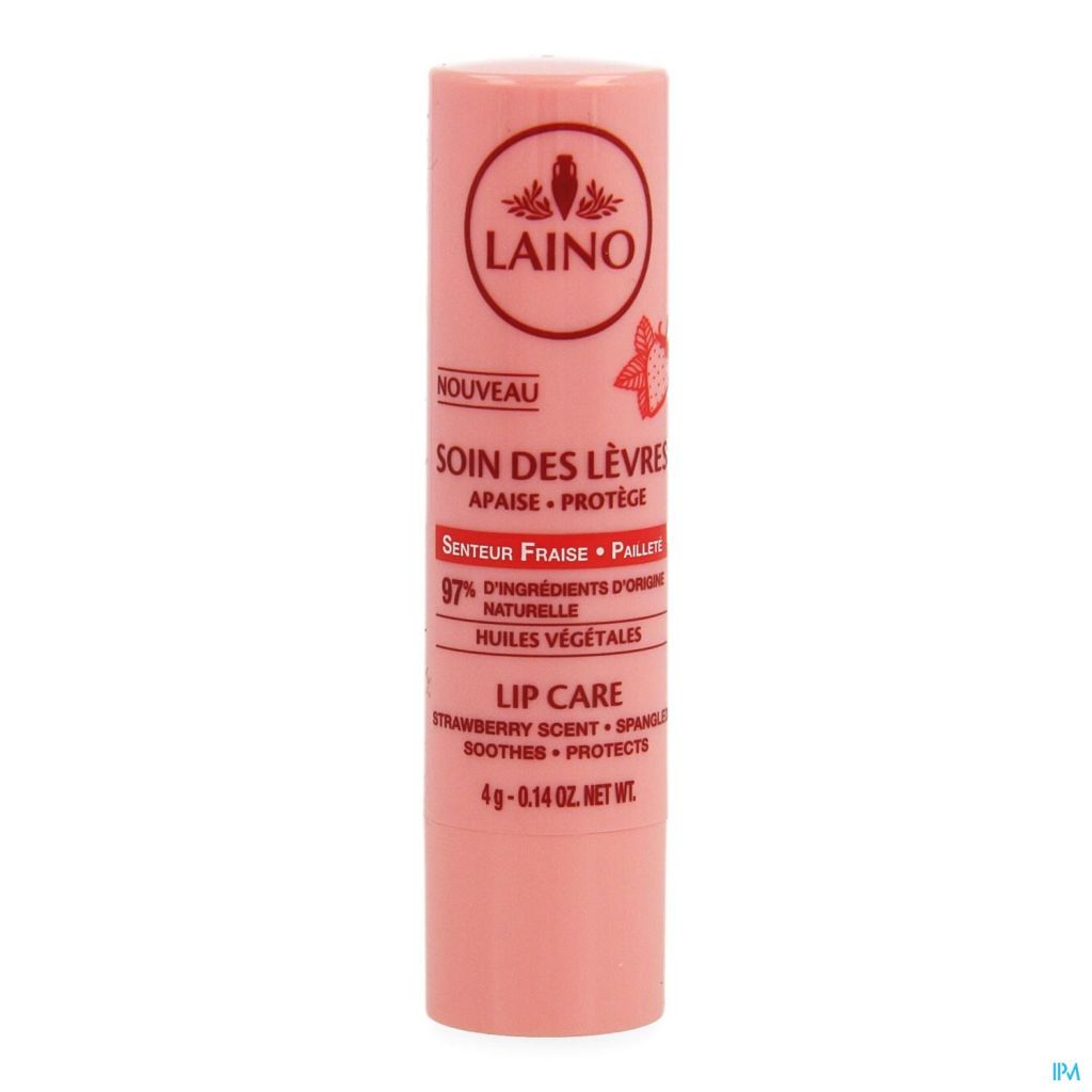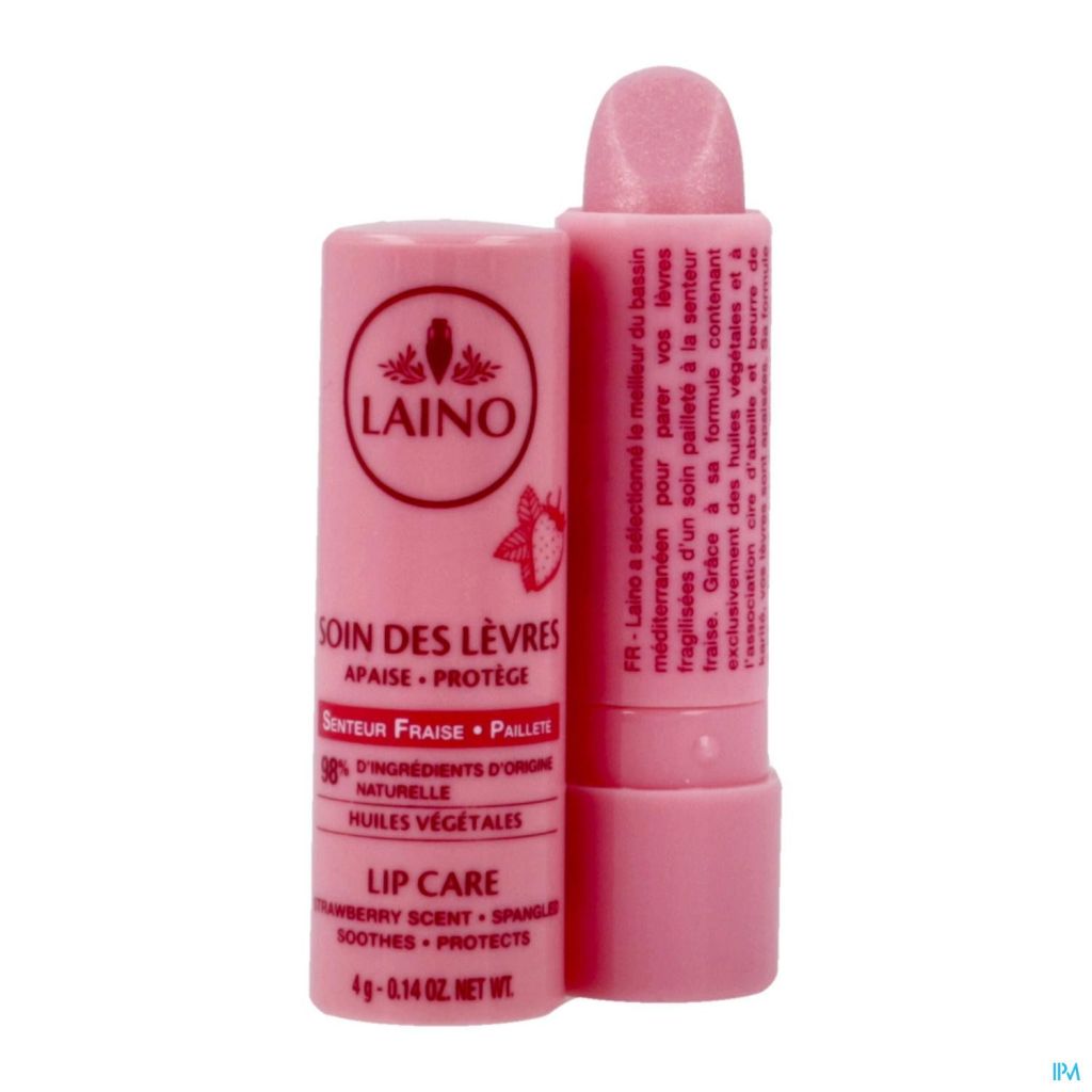 Laino heeft de beste mediterrane werkzame stoffen geselecteerd om uw lippen te verfraaien met een glitterlippenstift met aardbeiengeur.