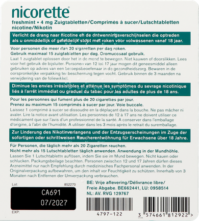 - Nicorette® Freshmint Zuigtabletten zijn een geneesmiddel voor volwassenen. Niet te gebruiken door niet-rokers.