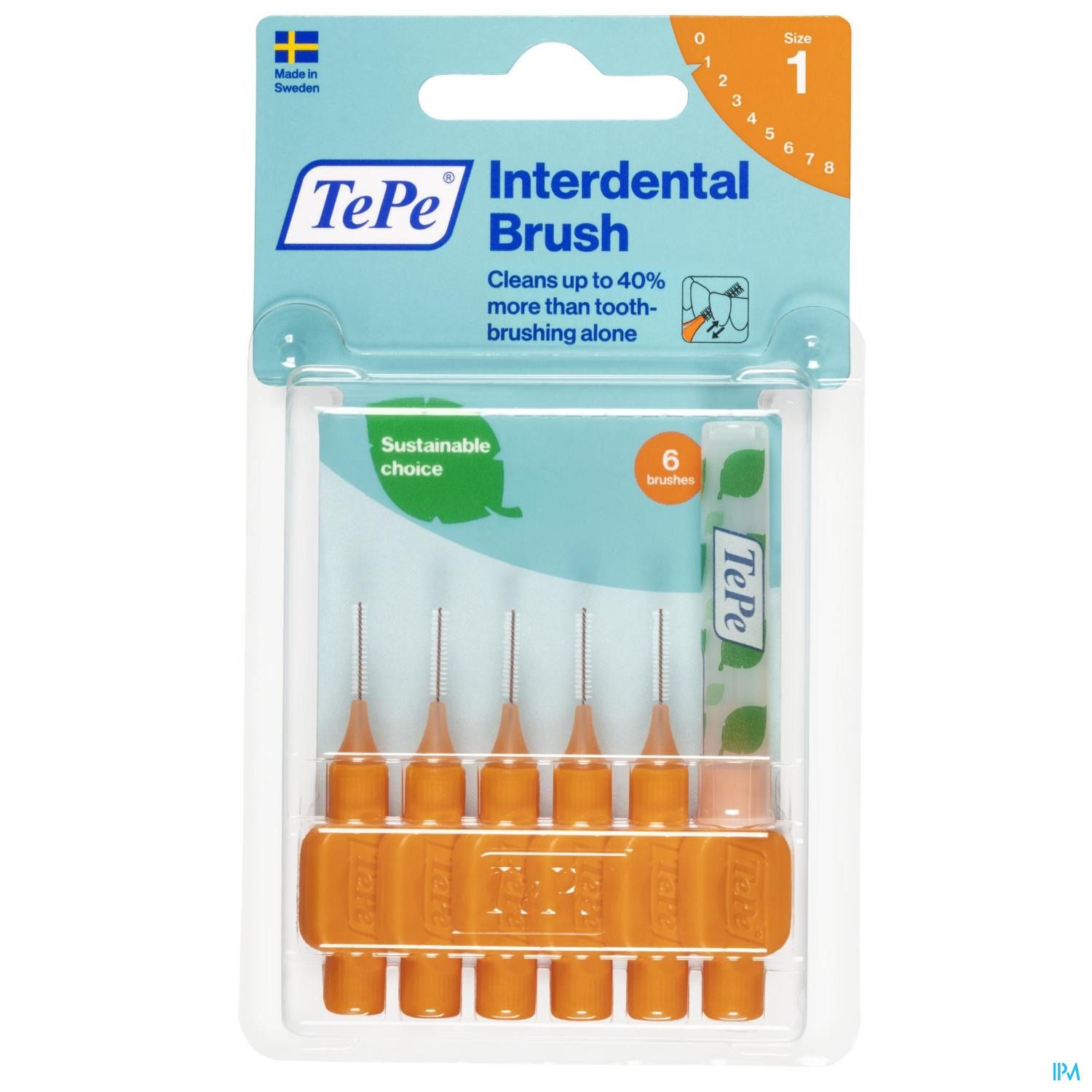 Een interdentale rager van TePe, ontworpen om de openingen tussen de tanden en kiezen te reinigen waar een gewone tandenborstel niet bij kan komen. Gebruik dagelijks om het tandvlees, tanden en kiezen gezond en fris te houden.