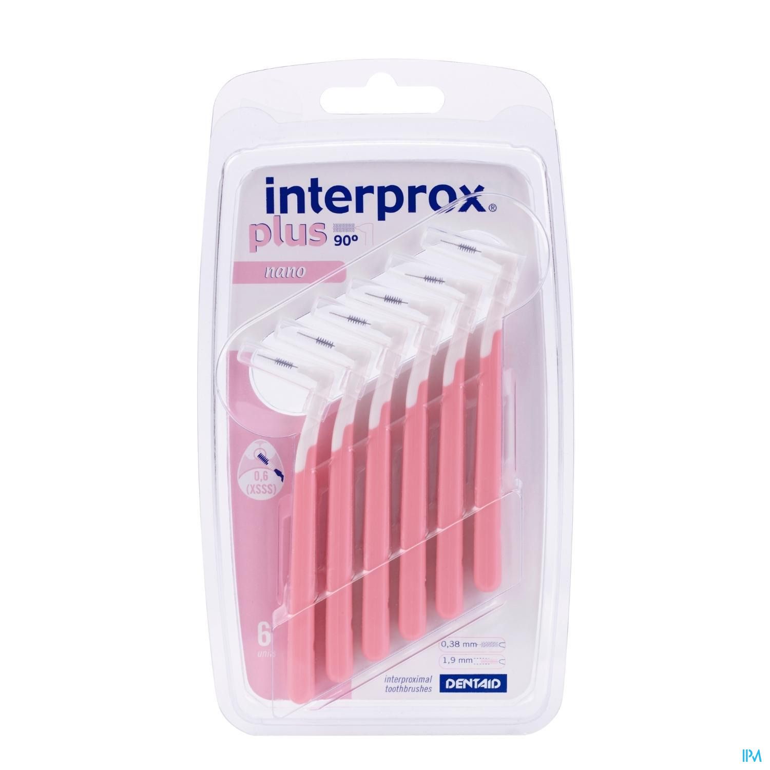 Interprox Plus Nano Roze is speciaal ontwikkeld voor het reinigen van de ruimten tussen tanden vóór in de mond. Cariës (gaatjes) en tandvleesontstekingen beginnen vaak tussen tanden en kiezen. Deze ruimte reinig je het meest effectief met een interdentaal borsteltje. Een borsteltje is effectiever dan tandenstokers of rubbersticks. De borsteltjes van Interprox zijn voor dagelijks gebruik en gaan langer mee. Omdat de interdentale ruimten tussen tanden en kiezen varieert, is het belangrijk om voor iedere specifieke situatie het meest geschikte borsteltje te kiezen. Vraag je mondzorgprofessional welke maat het meest geschikt is. Interprox Nano Roze heeft een gehoekt handvat en beschikt over een cylindrisch gevormde borstelkop met PHD maat 0.7.