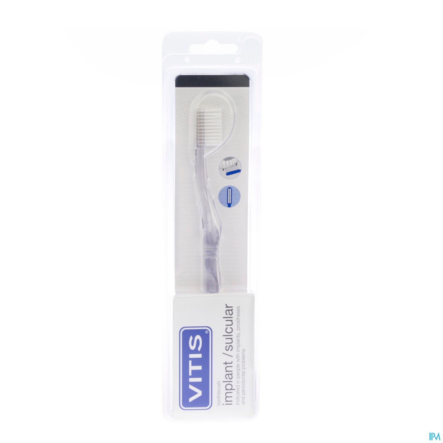 VITIS Implant Sulcular is een speciale implantaatborstel die zeer geschikt is voor de dagelijkse reiniging en verzorging van implantaten en de tandvleesrand. De zachte Tynex® borstelharen zijn in 2 smalle rijen op de borstelkop geplaatst voor het effectief reinigen van de tandvleesrand. Gebruik tweemaal daags naast een normale tandenborstel.