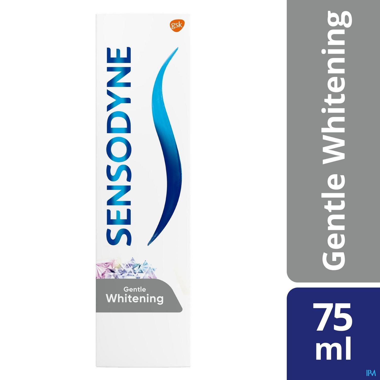 Sensodyne Gentle Whitening is een dagelijkse fluoridetandpasta, speciaal ontwikkeld om gevoelige tanden witter te maken en langdurig gevoelige tanden te beschermen. Het helpt uw tanden witter te maken door vlekken weg te poetsen, waardoor u de natuurlijke witheid van uw tanden kunt herstellen. Bij tweemaal daags poetsen werkt Sensodyne Gentle Whitening 24/7 om te beschermen tegen gevoeligheid. Het bevat fluoride om de tanden te versterken en te beschermen tegen tandbederf. Je kunt het dagelijks gebruiken en biedt alle voordelen van een dagelijkste tandpasta. Als je last hebt van gevoelige tanden, heb je waarschijnlijk blootliggend tandbeen. Bij blootliggend tandbeen kan koud of warm eten en drinken de zenuw prikkelen en dat kan gevoelig zijn. Tandbeen dat beschermd wordt door tandglazuur of tandvlees, kan bloot komen te liggen door te hard poetsen, tandenknarsen en/of tanderosie. Gebruik Sensodyne Gentle Whitening als dagelijkse tandpasta: (1)De formule biedt bescherming bij gevoelige tanden, 24 uur per dag, 7 dagen per week, (2) Helpt tanden hun natuurlijke witte kleur terug te krijgen door vlekken op een zachte manier te verwijderen, (3) Verwijdert tandplak bij 2 x daags poetsen en bevat fluoride dat helpt beschermen tegen cariës, (4) Door de muntsmaak voelt je mond schoon en fris.
