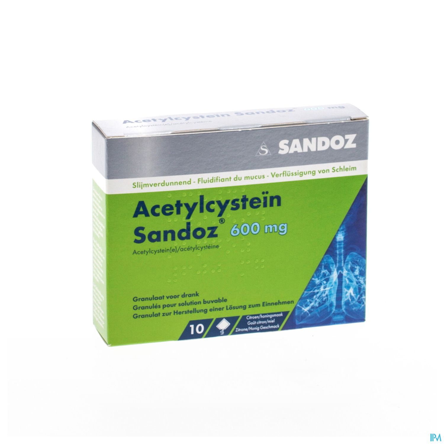 Acetylcystein Sandoz 600mg Granul. Drank Zakje 10 is een geneesmiddel : Lees de bijsluiter zorgvuldig. Niet langdurig gebruiken zonder medisch advies.