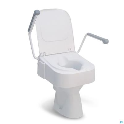 Toiletverhoger met deksel en wegklapbare armsteunen.