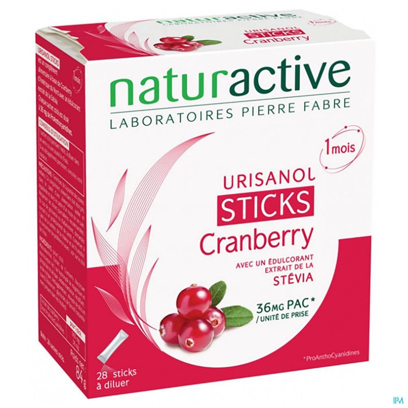 Urisanol is een voedingssupplement op basis van veenbes van Noord-Amerika. De sticks zijn op basis van cranberry (veenbes). De aanwezigheid van proantocyanidinen heeft echte voordelen aangetoond bij het voorkomen van urineweginfecties.*