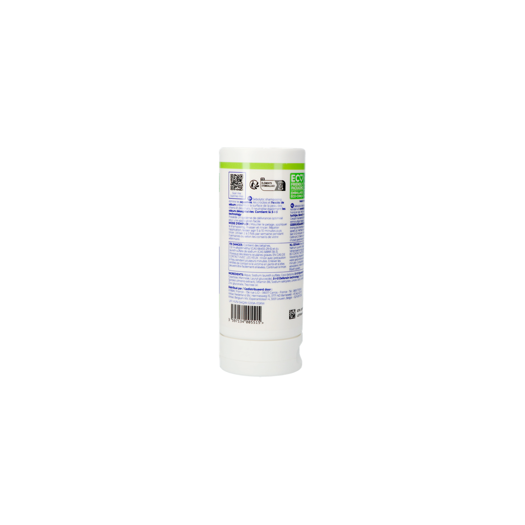 Aqua, Gentle cleansing agents, Glycotechnology (Rhamnose, Galactose, Mannose, Lauryl glucoside), Defensin technology (Peumus boldus leaf extract, Spiraea ulmaria extract), Vitamin B6, Sodium salicylate, Linoleic acid, Linolenic acid, Piroctone olamine, Zinc gluconate, Tea tree oil.