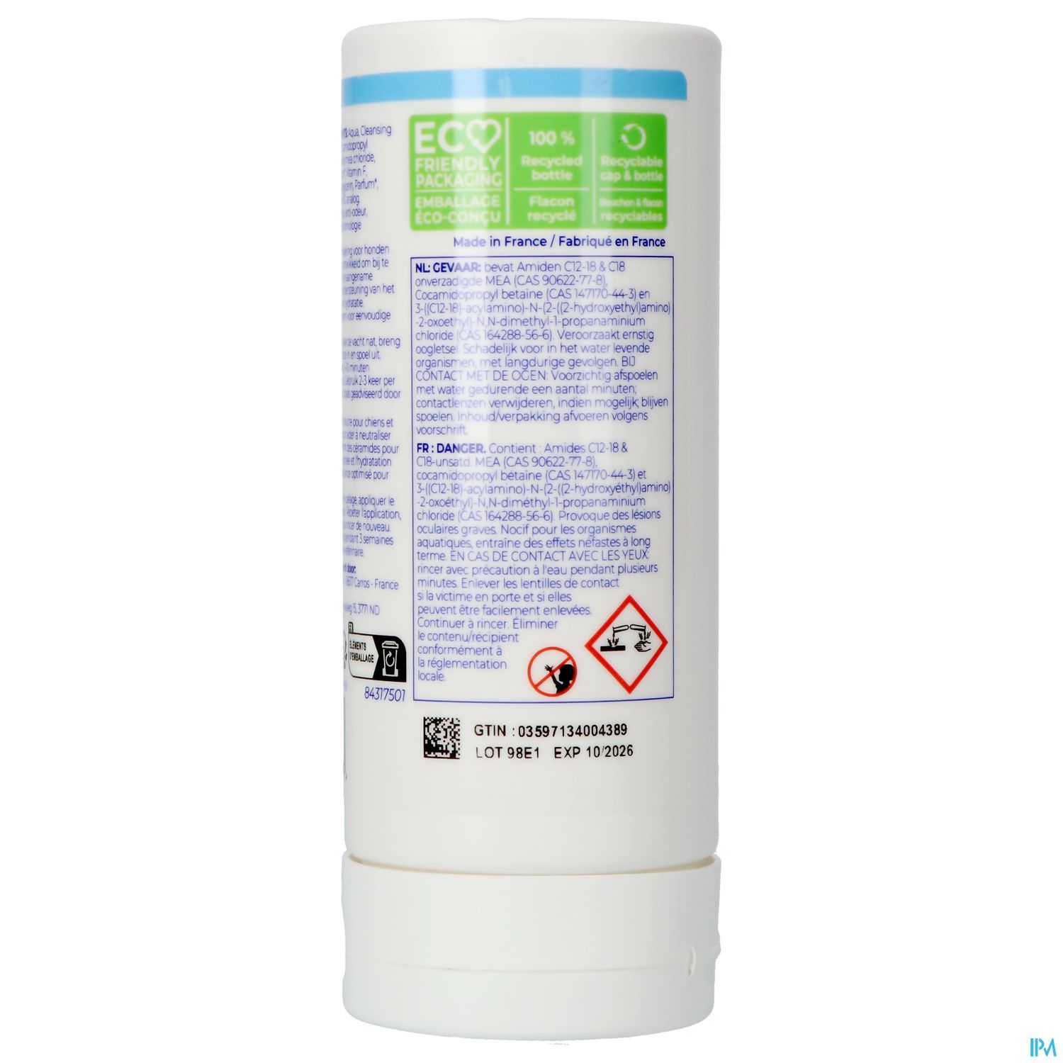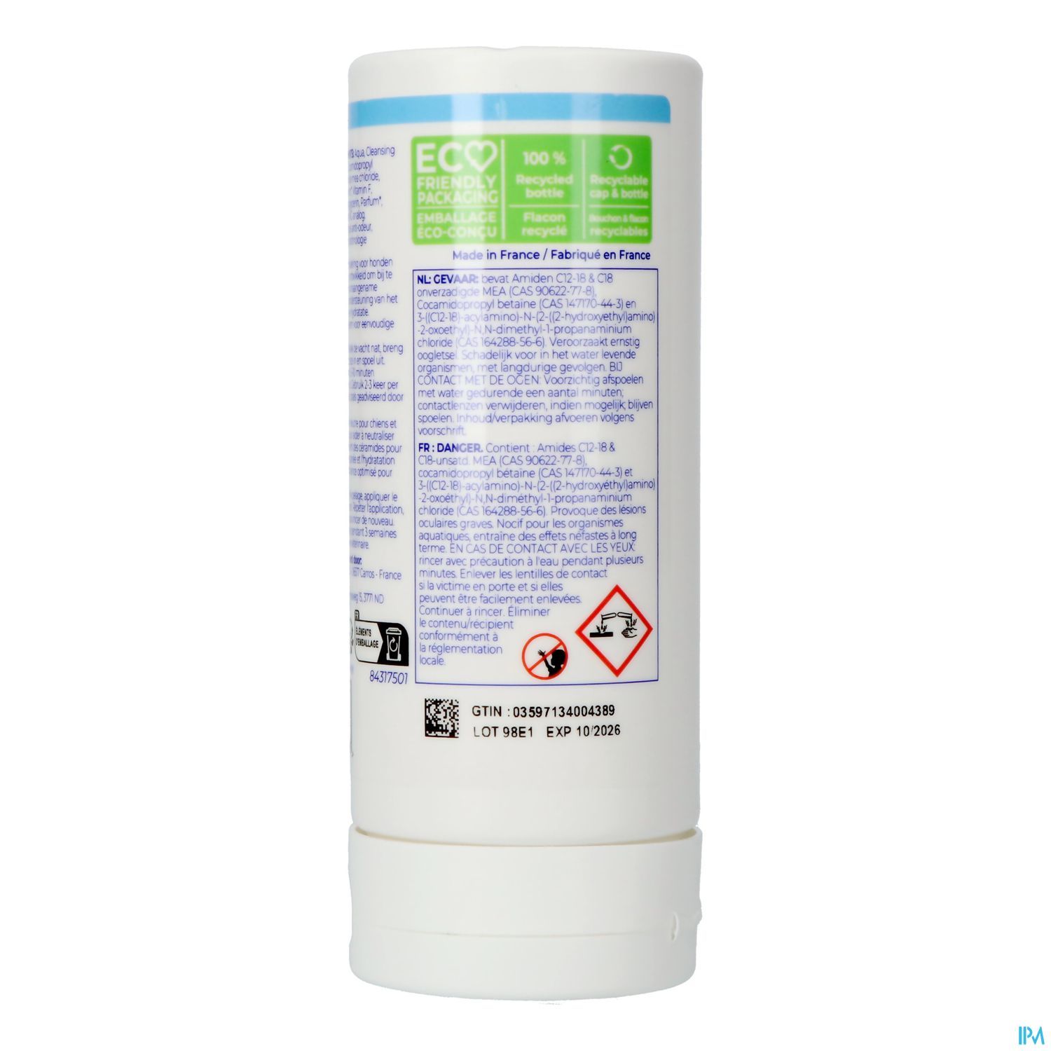 Aqua, Cleansing agents, Cocamidopropyl betainamide mea chloride, Cyclodextrin*, Vitamin F, Ethylhexylglycerin, Parfum*, Ceramide NG analog. *anti-geur technologie