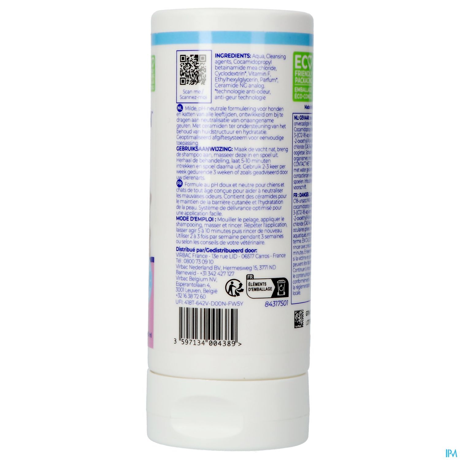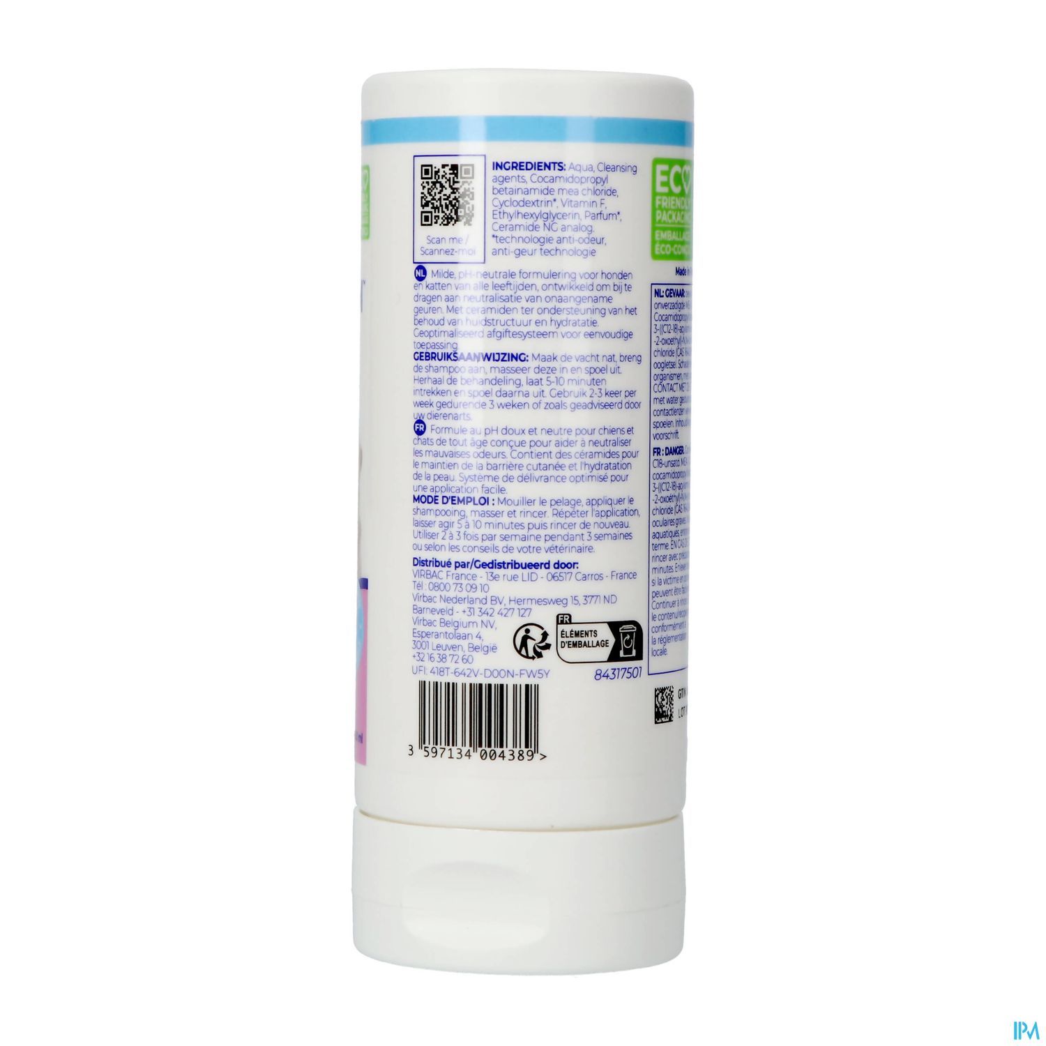 De shampoo heeft een aangename, milde kokosgeur en helpt bij neutralisatie van onaangename luchtjes. Specifieke moleculen binden aan stofjes die verantwoordelijk zijn voor onaangename geurtje en neutraliseren deze.