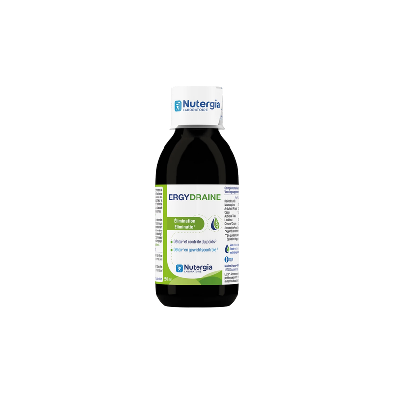 ERGYDRAINE combineert planten die traditioneel worden gebruikt om de eliminatiefuncties via de nieren te bevorderen (moerasspirea, lindespint en zwarte bes), die bijdragen tot de ontgifting (artisjok) of tot gewichtscontrole (zwarte bes).