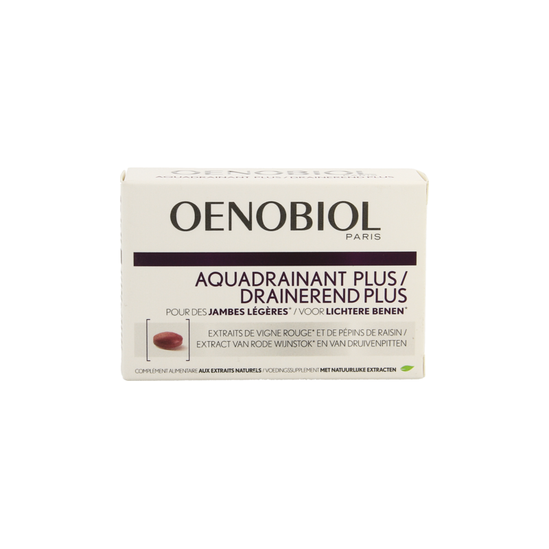 Oenobiol Drainerend Plus bevat druivenpitextract, vitamine C en rode wijnstok, en helpt het gevoel van zware benen te verminderen.