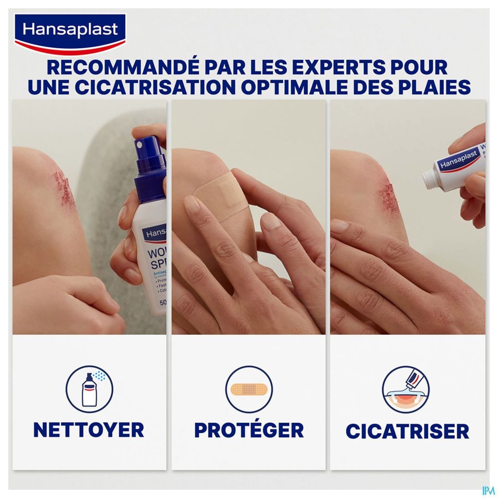 Voor optimale wondverzorging de wond schoonmaken met Hansaplast wondspray / reinigingsspray en de huid voorzichtig drogen. Breng vervolgens de steriele Hansaplast pleister aan zonder uit te rekken. Zie ook de illustraties op de verpakking