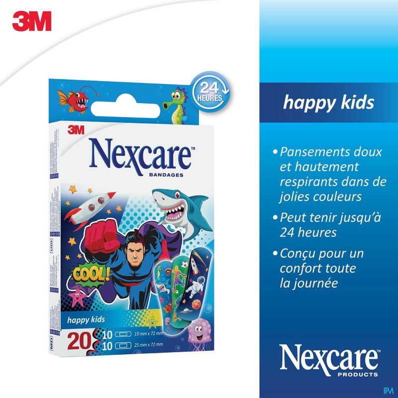 Als uw kinderen hun knie schaven of in hun vinger snijden, tovert u met Nexcare™ Happy Kids Cool pleisters een lach op hun gezicht. Onze pleisters met leuke figuurtjes in heldere en aantrekkelijke ontwerpen leiden hen af terwijl u hun tranen droogt of de wond schoonmaakt. Deze flexibele pleisters beschermen ontvellingen of schaafwonden terwijl uw kinderen weer in bomen klimmen of tikkertje spelen. Het ademende materiaal is zacht voor de huid en kan gemakkelijk worden verwijderd. Het wondkussen absorbeert wondvocht maar kleeft niet aan de snij‑ of schaafwond, zodat die snel en beschermd kan genezen.