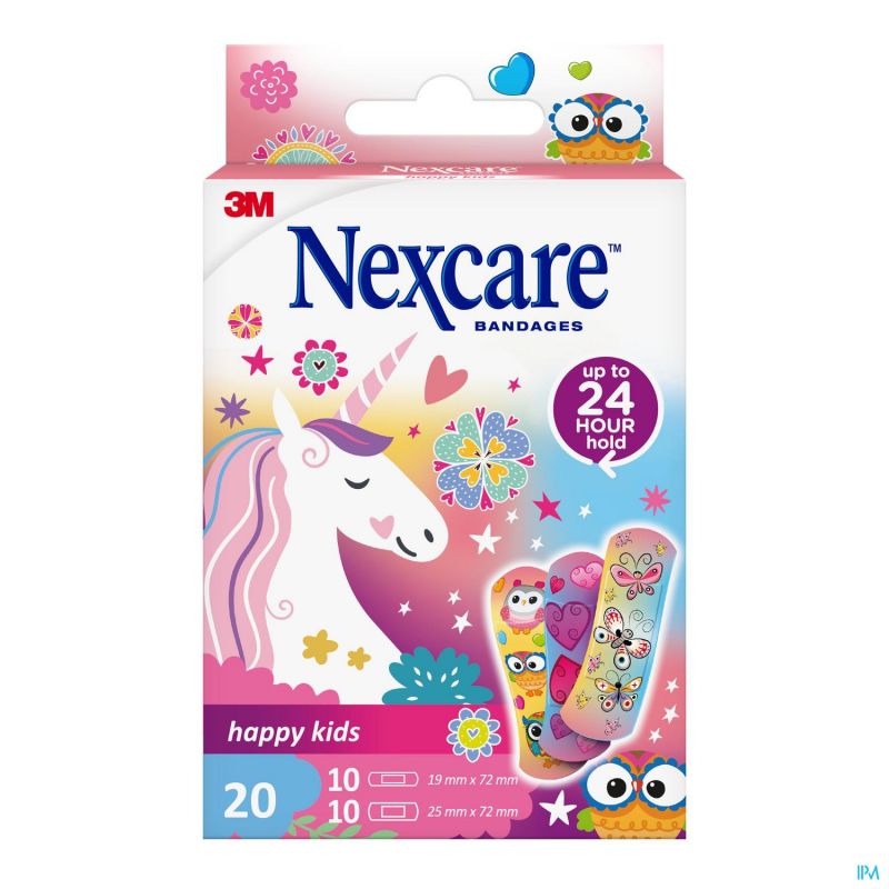 Als uw kinderen hun knie schaven of in hun vinger snijden, tovert u met Nexcare™ Happy Kids Magic pleisters een lach op hun gezicht. Onze pleisters met leuke figuurtjes in heldere en aantrekkelijke ontwerpen leiden hen af terwijl u hun tranen droogt of de wond schoonmaakt. Deze flexibele pleisters beschermen ontvellingen of schaafwonden terwijl uw kinderen weer in bomen klimmen of tikkertje spelen. Het ademende materiaal is zacht voor de huid en kan gemakkelijk worden verwijderd. Het wondkussen absorbeert wondvocht maar kleeft niet aan de snij‑ of schaafwond, zodat die snel en beschermd kan genezen.