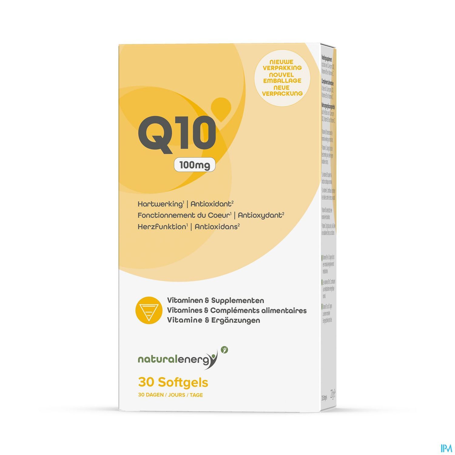 Q10 100MG bevat 100mg Ubiquinol, de gereduceerde vorm van co-enzym Q10. Ubiquinol behoort tot de klasse der anti-oxidantia. Deze 100mg Ubiquinol werd aangereikt met 7mg Vitamine E.