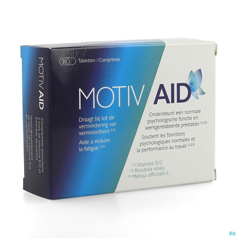 Motiv-Aid is een voedingsupplement op basis van vitamine B12, Rhodiola rosea en Melissa officinalis.