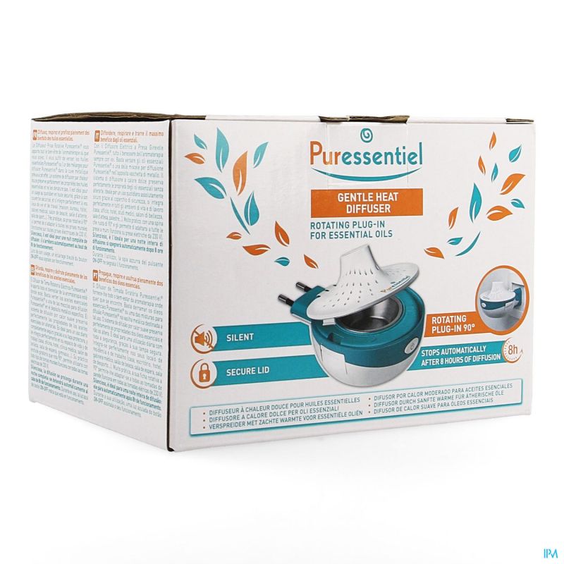 De elektrische verspreider van Puressentiel® verschaft u de heerlijke weldaad van aromatherapie, waar u ook bent. De verspreider is ideaal voor een veilig dagelijks gebruik, dankzij het beveiligde deksel, en versmelt mooi met uw woon- of werkplek (huis, bureau, hotel, medische praktijk, schoonheidssalon, wachtzaal, sportzaal...). Hij is bovendien heel stil en dus ook perfect geschikt voor 's nachts: na 8 uur schakelt hij automatisch uit.