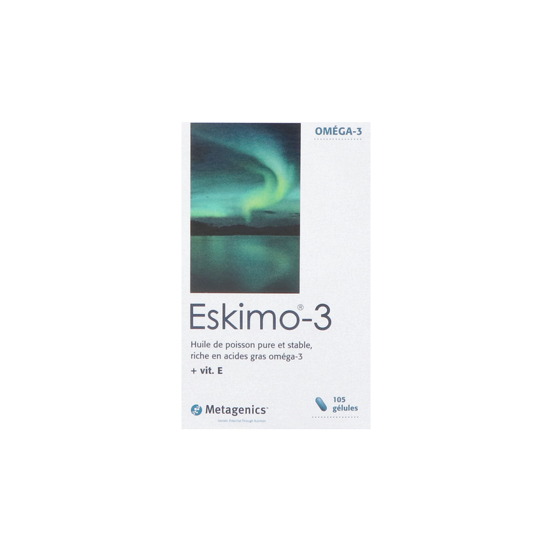 Eskimo®-3 is rijk aan omega 3-vetzuren. 3 capsules per dag bevattenvoldoende EPA en DHA (minstens 250 mg) ter ondersteuning van dehartfunctie. 5 capsules per dag leveren voldoende DHA (minstens 250 mg) ter ondersteuning van de hersenfunctie en het gezichtsvermogen.