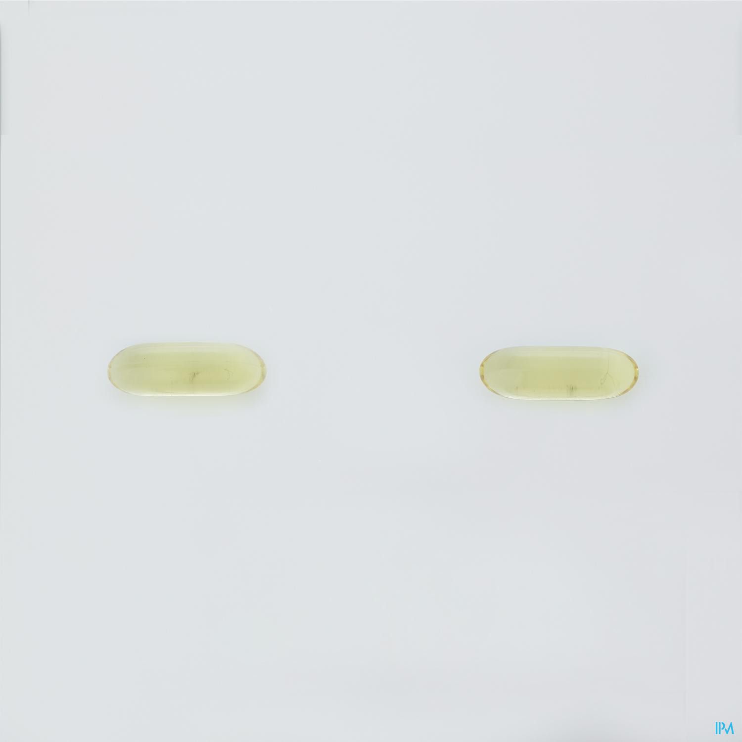 Visolie (omega 3) 350 mg waarvan EPA 180 mg en DHA 120 mg ; capsulewand : visgelatine ; emulgator : glycerol ; aroma : citroensmaak.