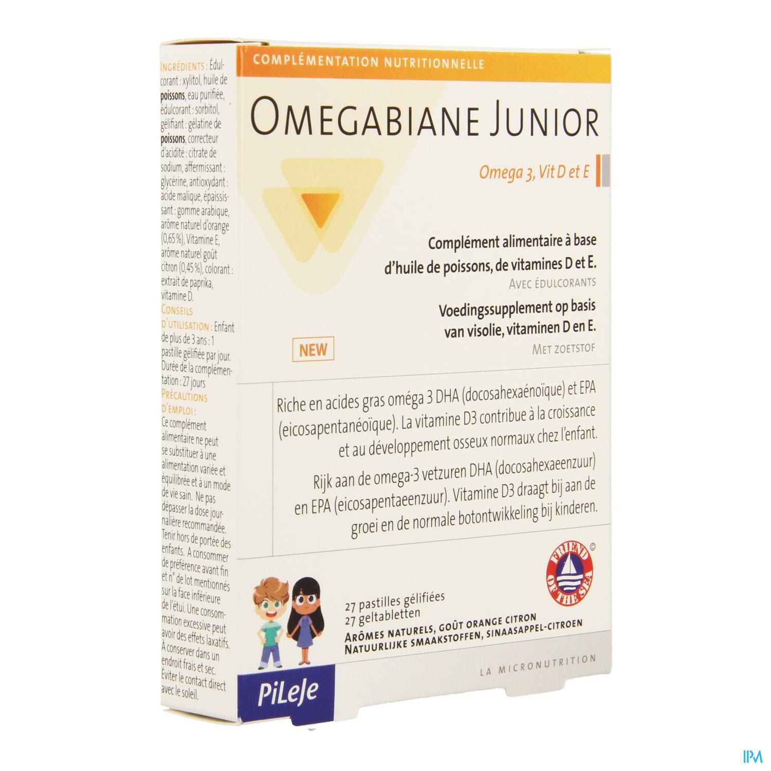 Zoetstof: xylitol, visolie, gezuiverd water, zoetstof: sorbitol, geleermiddel: visgelatine, zuurteregelaar: natriumcitraat, verstevigingsmiddel: glycerine, antioxidant: appelzuur, verdikkingsmiddel: arabische gom, natuurlijk sinaasappelaroma, vitamine E, natuurlijk citroenaroma, kleurstof: paprika-extract, vitamine D.
