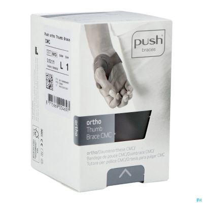 De Push CMC stabiliseert het basisgewricht van de duim (CMC) en positioneert de duim in een functionele stand. Hierdoor wordt de functie van de hand gewaarborgd, en symptomen als pijn en krachtverlies beperkt. De materiaalkeuze en de afgeronde randen garanderen optimaal draagcomfort en kan door het eenvoudige sluitsysteem gemakkelijk zelf worden aangelegd. Het product is antimicrobieel, geschikt voor gebruik in water en kan gemakkelijk worden afgedroogd INDICATIES