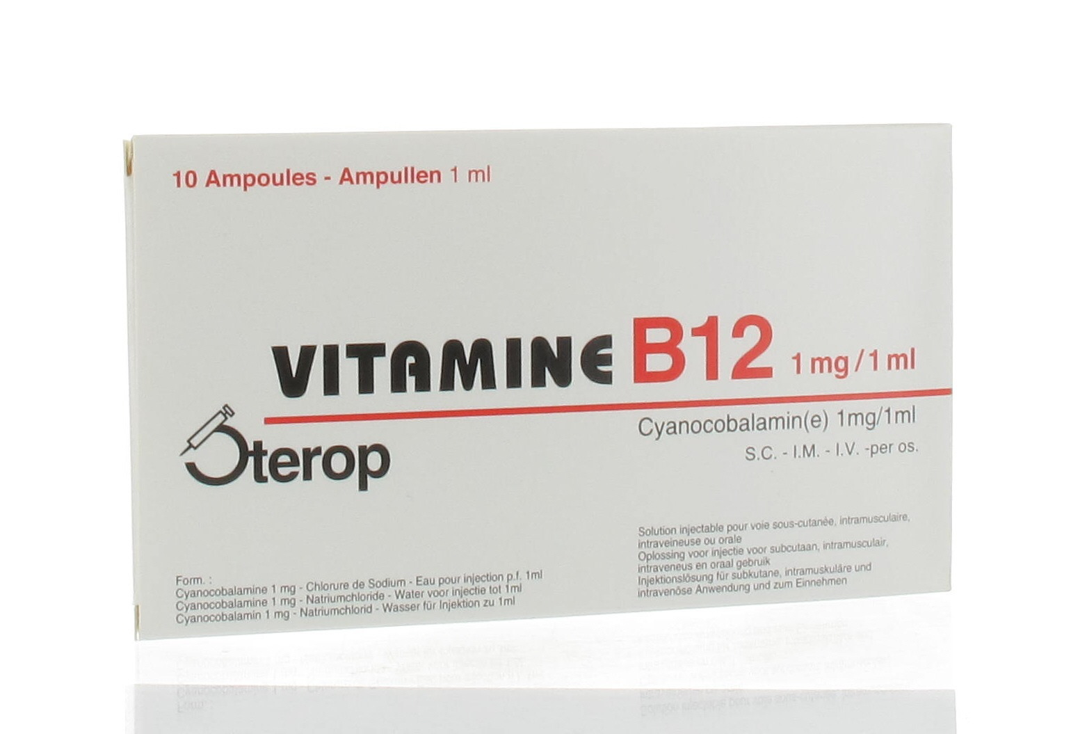De werkzame stof is cyanocobalamine 1mg/1ml.