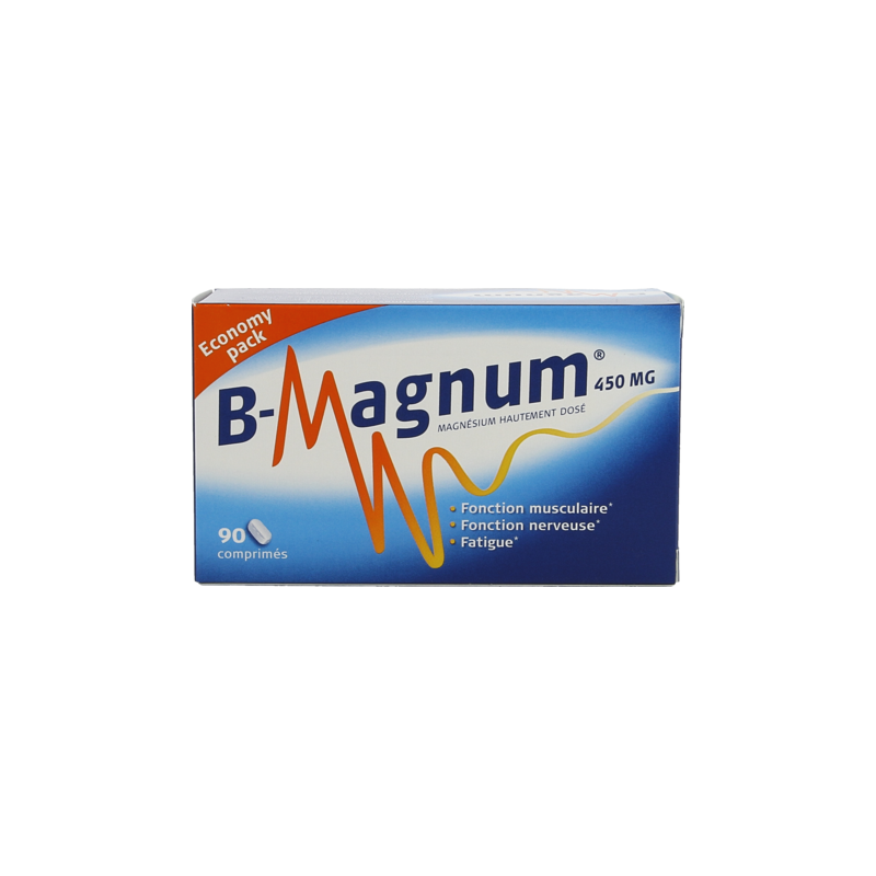 B-Magnum is een voedingssupplement met hoog gedoseerd magnesium; 450mg magnesium per tablet. B-Magnum kan gebruikt worden bij spierkrampen, vermoeidheid, zwangerschap, intensief sporten, stress. Het bestanddeel van B-Magnum; magnesium is 1 van de mineralen die onmisbaar zijn voor ons lichaam.