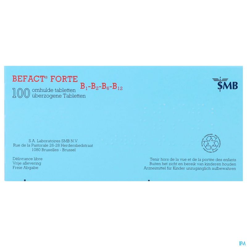 Befact Forte B1-b2-b6-b12 Omhulde Tabl 100 is een geneesmiddel : Lees de bijsluiter zorgvuldig. Niet langdurig gebruiken zonder medisch advies.