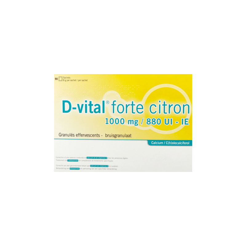 D-vital Forte Citroen 1000mg/880ie Bruis Zakjes 90 is een geneesmiddel : Lees de bijsluiter zorgvuldig. Niet langdurig gebruiken zonder medisch advies.