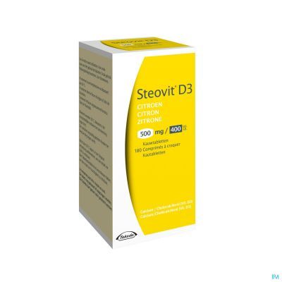 Steovit D3 Citroen 500mg/400ie Kauwtabl 180 Flacon is een geneesmiddel : Lees de bijsluiter zorgvuldig. Niet langdurig gebruiken zonder medisch advies.