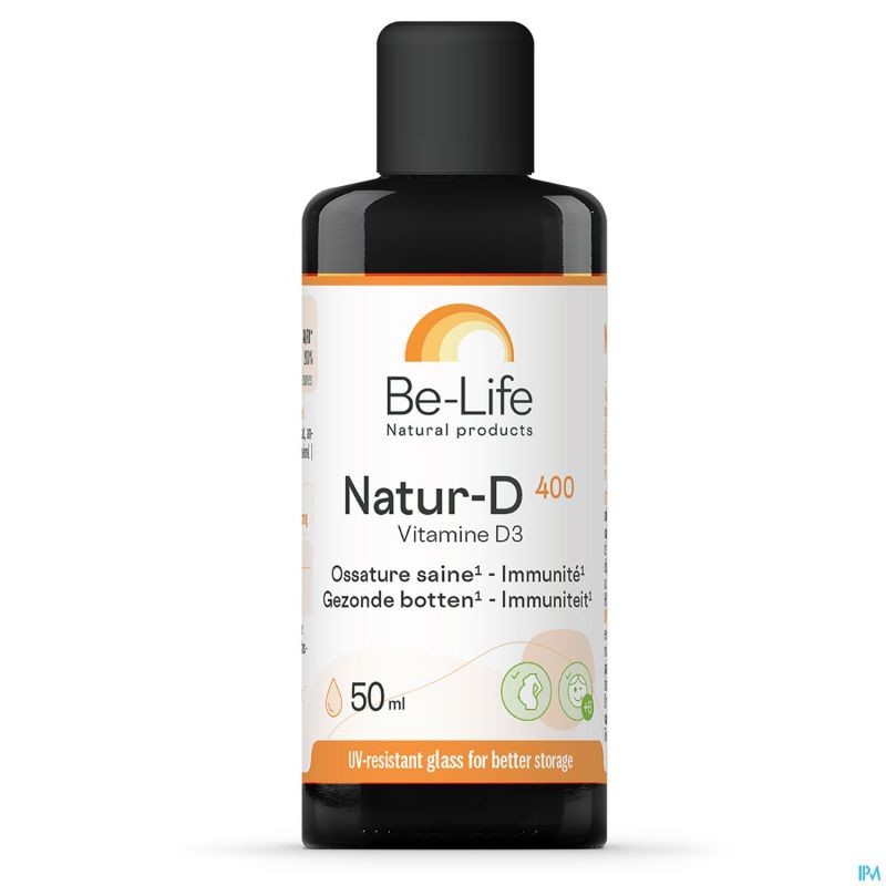 Natur-D 400 bevat een fysiologische dosis (400 internationale eenheden) vitamine D3 op maat van kinderen. De vitamine D van natuurlijke oorsprong (wordt beter gemetaboliseerd dan de synthetische vorm) is hier gecombineerd met TCM-olie. Natur-D helpt om de immuniteit te versterken, stevige botten en tanden aan te maken en te behouden en ondersteunt een normale spierwerking. Vitamine D vervult heel wat essentiële functies in ons lichaam: