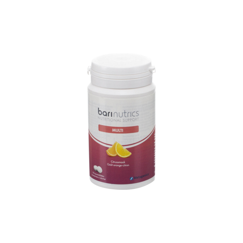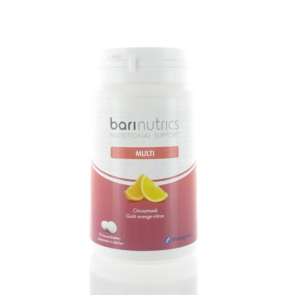Ingredienten per tablet: RI* Vitamine A (betacaroteen en retinylpalmitaat) 1200 mcg 150% Vitamine B1 (thiaminemononitraat) 4,2 mg 382% Vitamine B2 (riboflavine) 2,8 mg 200% Vitamine B3 (niacinamide) 32 mg 200% Vitamine B5 (calciumpanthotenaat) 12 mg 200% Vitamine B6 (pyridoxal-5-fosfaat) 2,8 mg 200% Vitamine B12 (methylcobalamine) 500 mcg 20000% Vitamine C (ascorbinezuur) 160 mg 200% Vitamine D (cholecalciferol) 50 mcg 1000% Vitamine E (gemengde tocoferolen en alfatocoferylacetaat) 24 mg 200% Vitamine K (fytomenadion) 135 mcg 180% Folaat (calcium-L-methylfolaat) 400 mcg 200% Biotine 100 mcg 200% Ijzer (-fumaraat) 14 mg 100% Chroom (-picolinaat) 80 mcg 200% Koper (-citraat) 1000 mcg 100% Jodide (kaliumjodide) 225 mcg 150% Mangaan ( -citraat) 4 mg 200% Magnesium ( -bisglycinaat) 60 mg 16% Molybdeen ( natriummolybdaat) 100 mcg 200% Selenium ( -methionine) 105 mcg 191% Zink ( -bisglycinaat) 22,5 mg 225% Cholinebitartraat 5 mg Inositol 5 mg