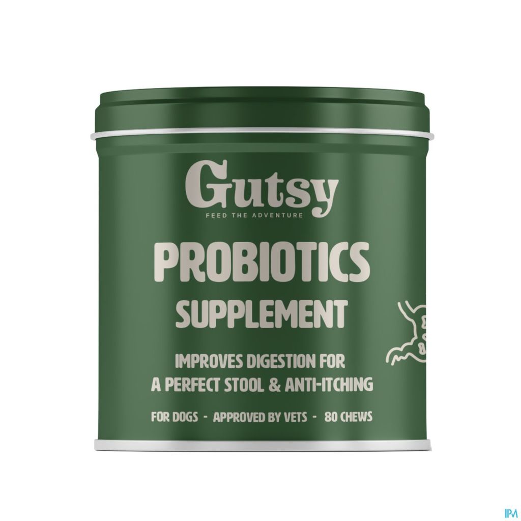 Het Gutsy probiotica supplement voor honden heeft als doel te zorgen voor een verbeterde spijsvertering en stoelgang. Het supplement is een soft chew dat gebruiksvriendelijk is en toegediend kan worden als een snoepje.