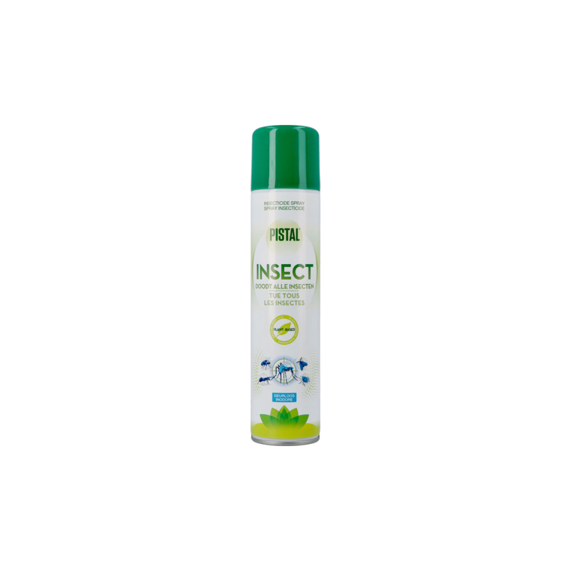 Pistal® Insect Geurloos doodt onmiddellijk & doeltreffend alle vliegende en kruipende insecten: muggen, vliegen, wespen, vlooien, kakkerlakken, motten, bedwantsen, mieren, mijten en teken.