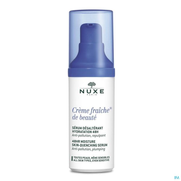 Dit ultrafris hydraterend serum hydrateert de meest dorstige huid intensief. Dankzij zijn unieke combinatie van plantaardige melksappen en hyaluronzuur, biedt deze verzorging 48 u hydratatie, kalmeert ze en beschermt de huid tegen vervuiling. Onmiddellijk na het aanbrengen neemt het oncomfortabel gevoel af. De huid is fris, zacht, voller en stralend.