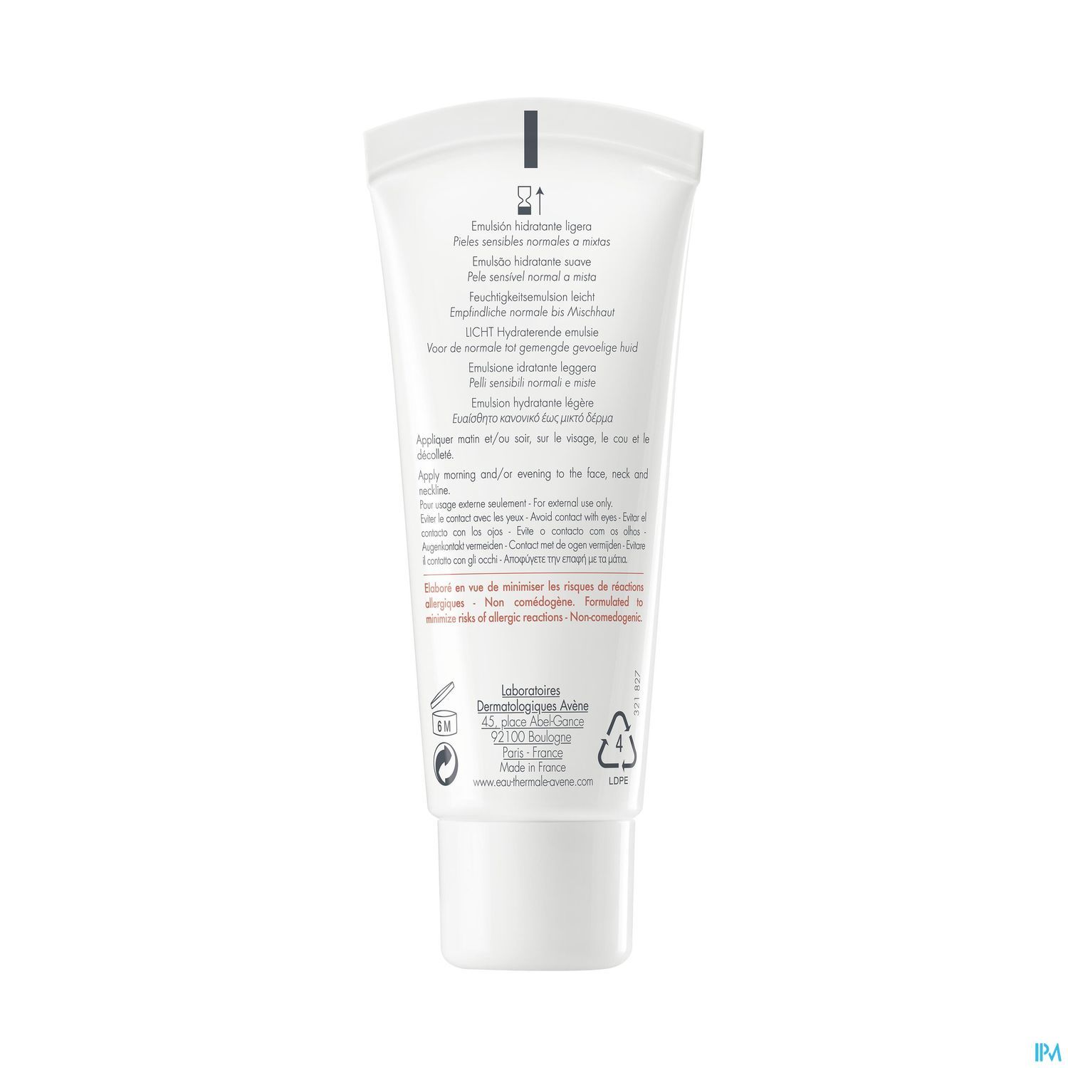 AVENE THERMAL SPRING WATER (AVENE AQUA). GLYCERIN. PROPYLENE GLYCOL DICAPRYLATE/DICAPRATE. C14-22 ALCOHOLS. DIMETHICONE. ISOCETYL STEAROYL STEARATE. TRIETHYLHEXANOIN. 1,2-HEXANEDIOL. POLYMETHYL METHACRYLATE. POTASSIUM CETYL PHOSPHATE. ACRYLATES/C10-30 ALKYL ACRYLATE CROSSPOLYMER. BENZOIC ACID. C12-20 ALKYL GLUCOSIDE. FRAGRANCE (PARFUM). HYDROXYETHYL ACRYLATE/SODIUM ACRYLOYLDIMETHYL TAURATE COPOLYMER. PHYTOSTEROLS. POLYSORBATE 60. SCLEROTIUM GUM. SODIUM HYDROXIDE. SORBITAN ISOSTEARATE. SQUALANE. WATER (AQUA)