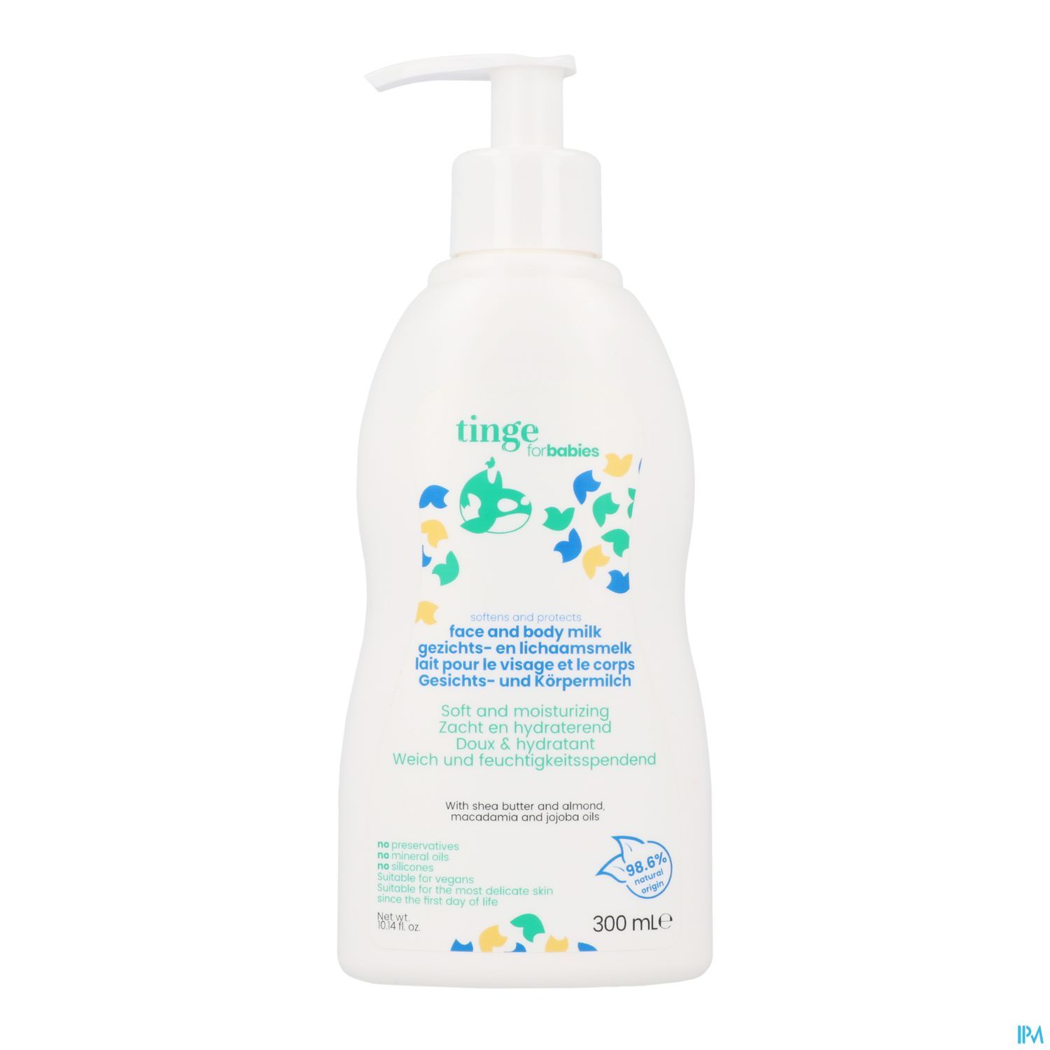Milde melk om de babyhuid te verzachten, te beschermen en te reinigen. Met karitéboter, amandelolie, macademia olie en jojobaolie. 98,6% ingrediënten van natuurlijke oorsprong.