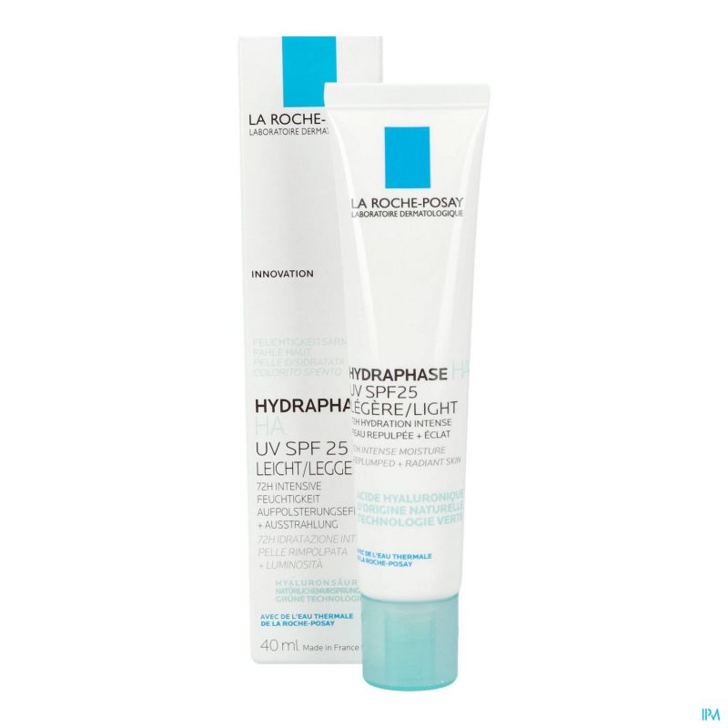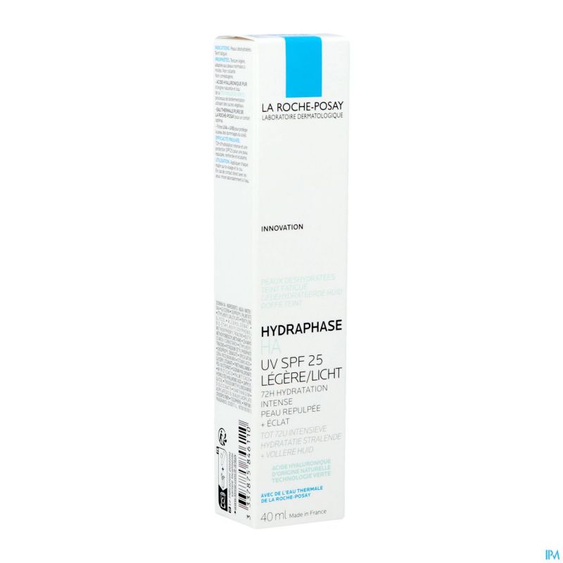 La Roche-Posay Hydraphase HA UV SPF25 Light is een lichte, hydraterende dagcrème met zonbescherming. De crème met lichte textuur hydrateert tot 72 uur en beschermt tegen schadelijke UVA-/UVB-stralen door middel van SPF25. Ze bevat puur hyaluronzuur van natuurlijke oorsprong, gewonnen door middel van 'Green Technology', een actief bestanddeel dat bekendstaat om zijn hydraterende en vullende eigenschappen voor de huid. In combinatie met thermaal water helpt het de huid te hydrateren, te kalmeren en te laten stralen. De huid oogt gladder en voller na één keer aanbrengen. De formule is hypoallergeen, getest op allergieën en getest op een gevoelige huid.