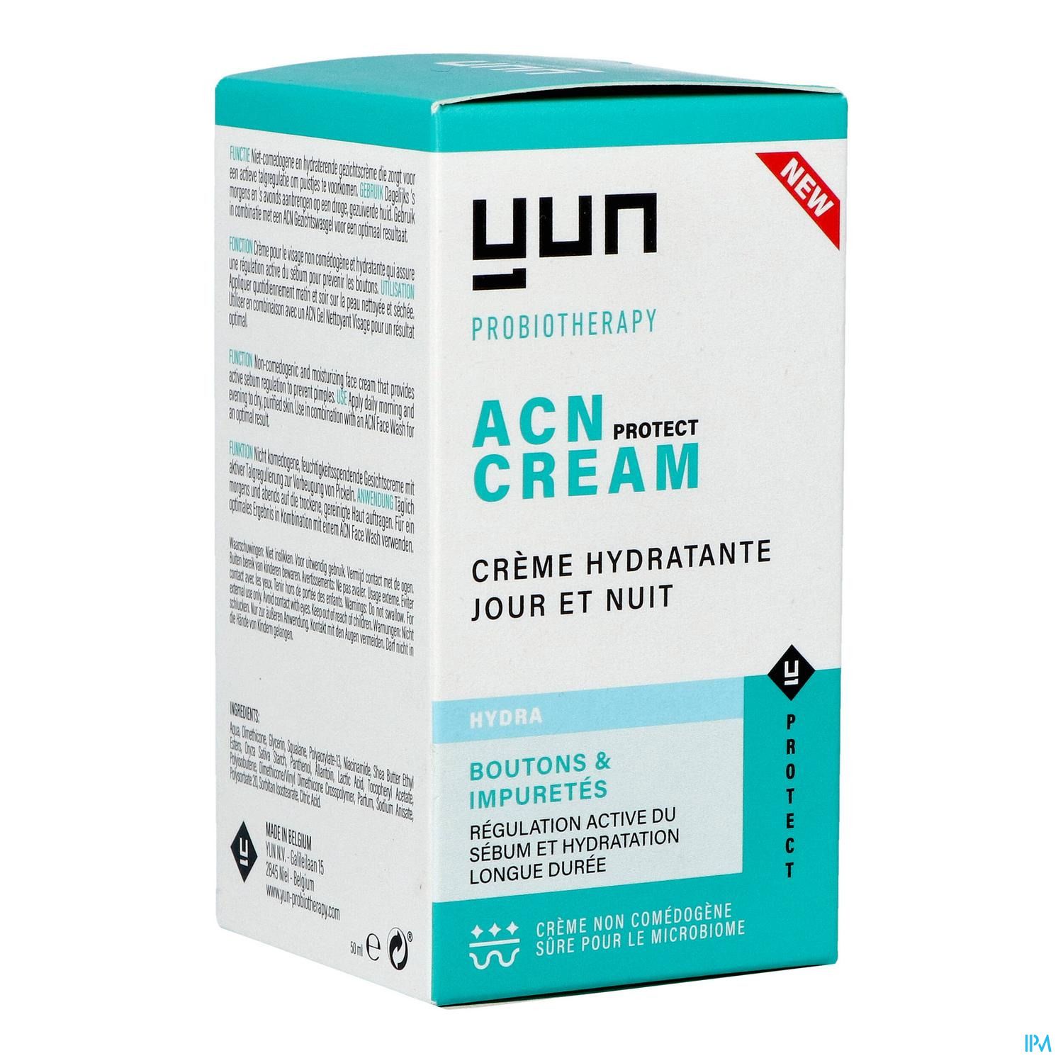 Niet-comedogene vochtinbrengende crème voor het onderhoud van de acnegevoelige huid.